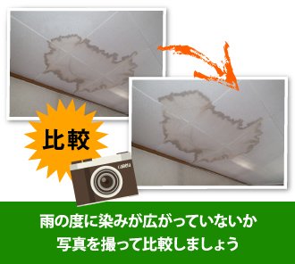 なお、点検する度に一定のポイントから撮影して画像を残しておきましょう。以前のものと比較できるので、染みが拡がったのか拡がっていないのかが容易に判別できます。