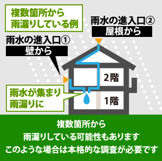 また、複数の箇所から浸入している場合は全ての箇所を一気に特定するのが難しいこともあります。