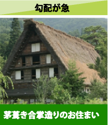 合掌造りに較べると勾配はなだらか。使用される屋根材によっても、最小勾配が定められている。