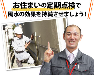 効果を持続させたいなら、悪天候後の点検と季節毎の点検は必要です。目視で構いませんから、お住まいをじっくり見回ってあげてください。