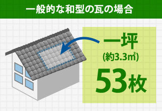 和瓦は1坪3.3㎡に53枚が使われています。全枚数を53で割れば、屋根の面積が求められるのです。