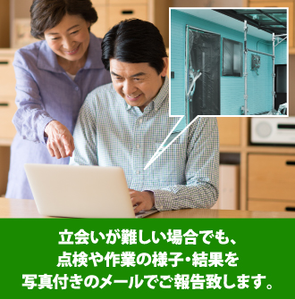 建物の原状と点検の様子はしっかりと撮影し、そのデータをお送りしますのでそれをご覧になってご判断ください。 工事をお任せいただけるのであれば、その様子と進捗も撮影し、データをお送りいたします。 街の外壁塗装やさんでは過去、海外に在住の方から依頼を受けて、工事をしたこともあります。 その時は工事の様子を撮影したデータを毎日、メールでお送りし、ご確認していただきました。