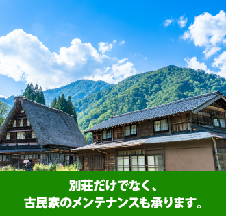 古民家のメンテナンスも可能ですか? 田舎暮らしに憧れ、リノベーションされた古民家を購入し、別荘代わりに使用しています。現在の建物と造りが大分違うと思うのですが、そういった建物のメンテナンスもお願いできますか。