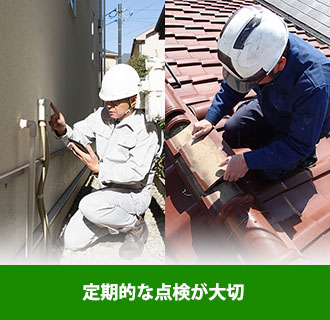 こまめにお掃除をしてお住まいを綺麗にしている方はたくさんいらっしゃいます。お庭を綺麗にしている方もたくさんいらっしゃいます。それでも、お住まいの外周りまで手が回っていないことが多いのです。 以上のようなことから、外壁や屋根などお住まいの外周りは意識して定期的に点検してあげることが必要です。 台風や大雪の後も被害がなかったかを確認してください。「家が大分、古びてきたなあ」、「外壁の汚れが目立つようになってきたなあ」と感じたら、そろそろメンテナンスの時期です。
