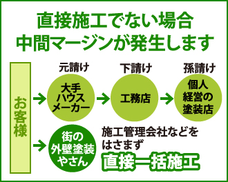 お客様から受注を得るために莫大な宣伝広告費を使っているからです お客様はどうして大手ハウスメーカーや工務店に外壁塗装や屋根塗装を頼むのでしょうか。これは知名度があるからに他なりません。