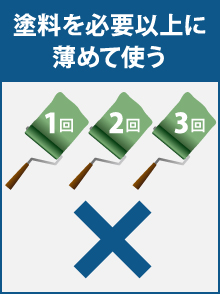 計3回の塗装を行うのですが、中塗りと上塗りのいずれかを省けばそれだけ材料費を減らせます。また、3回塗りをするにしても、規定以上に塗料を薄めてしまえば、こちらも材料費を減らせます。