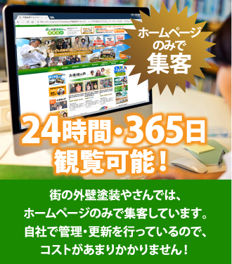 ホームページは世界中からアクセスすることができます。24時間・365日閲覧が可能ですから、保存性のことも気にする必要はありません。また外注に頼らず、自社で更新と管理を行うことによって極力コストを減らしています。