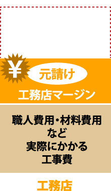 こういったところでは直接工事は行いません。マージンを上乗せして工務店に仕事を発注します。