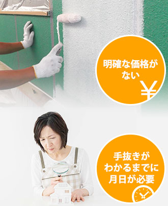また、外装にしろ、内装にしろ、工事が終了してしまえば内部を見ることはできません。そのため、手抜き工事であっても気付くことは少ないのです。例えば外壁塗装の場合、基本は3回塗りですが、仕上げ工程の上塗りを省いても、中塗りで同じ色が塗られていれば見た目はほとんど変わりません。違いが出てくるのはある程度の期間が経過してからなのです。