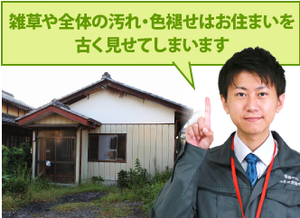 では、そのように感じた理由は何でしょうか。分かりやすい一つの例が建物の周りやお庭に雑草が生い茂り、草ぼうぼうというパターンです。