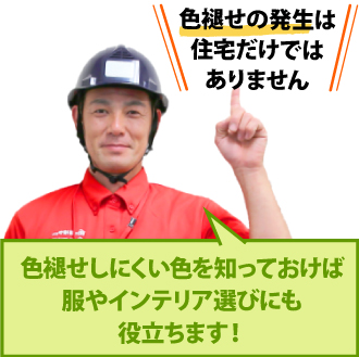 必ず褪色してしまうのであれば、その宿命を受け入れて、色褪せしやすい色を裂けて、色褪せしにくい色を選ぶべきではないでしょうか。