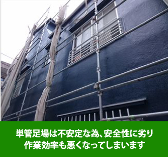 また、昔ながらの足場の組み立てで単管足場という方法もあります。