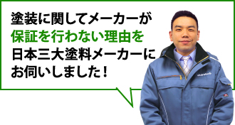 では、外壁塗装・屋根塗装の場合はどうして保証を行わないのでしょうか。まずは、どうして行っていないかを日本三大塗料メーカーに聞いてみました。