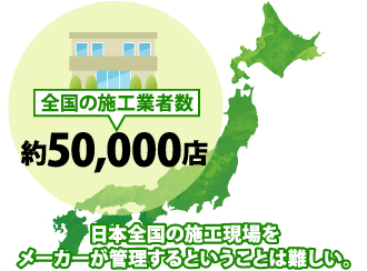 作業や施工品質の管理の難しさからどのメーカーも原則保証はつけていない