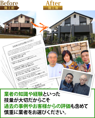 塗料の品質はもちろん、外壁塗装や屋根塗装の成功には知識や経験といった業者の技量任せの部分が大半を占めるのです。