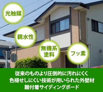 汚れが付きにくく、綺麗が長続きする外壁材は難付着サイディングボードの可能性があります