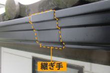 支持金具で鼻隠しに取り付けられていますが、強風や積雪の影響を最も受けやすい部位です。支持金具には雨樋を下から支える受け金具と上方で留める吊り金具があり、鼻隠しや垂木への固定方法もつる首・打ち込み・正面打ち等様々ですので補修前に確認しておく必要があります。