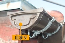 文字通り屋根の軒に取り付けられている雨樋で、屋根からの雨水を受け止める部材です。 樋の1本自体は2.7~4m程とそれほど長くは無いため、継ぎ手や曲がりで繋ぎ合わせながらお住まいの形状に合わせて取り付けます。最端に設置する「止まり」には雨樋のメーカー・品番が刻印されています。