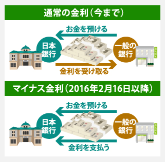 各金融機関が日本銀行へお金を預けておくと、自動的に減っていくというよく分からないことが起こるのがマイナス金利です。