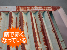 するとボルト穴付近やもらい錆びを受けた折板屋根が穴あきを起こし雨漏りが発生してしまうのです。