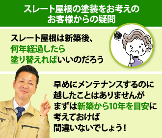 「スレート屋根は新築後、何年経過したら塗り替えればいいのだろう」と疑問に思う方も多いのではないでしょうか。