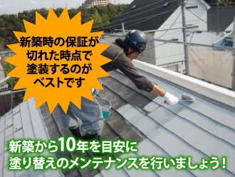 これについてはさまざまな説がありますが、前に述べたようにまずは新築から10年を目安に考えておけば間違いないでしょう。もちろん、もっと早い時期でも大丈夫ですが、ハウスメーカーなどでは「他社が工事した場合、保証を無効とする」なんて取り決めもありますから、その新築時の保証が切れた時点で塗装するのがベストです。早めにメンテナンスするのに越したことはありません。