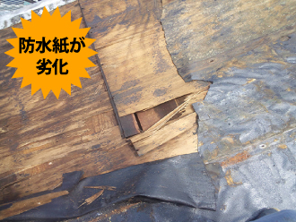 これらの隙間はもちろん、雨が入り込まないような開け方をされているのですが、横殴りの雨や豪雨の場合、屋根材の下に雨が入り込んでしまうこともあります。屋根材の下には防水紙が敷かれており、室内側に雨水を浸入させることなく、排出できるようになっているのです。室内に雨漏りするという場合、屋根や外壁の不具合の他、この防水紙にも不具合が発生していることが多いのです。