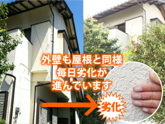 窯業系サイディングの外壁も10年前後で塗り替え時期を迎えます。金属系サイディングやALCも同様です。屋根の防水性が落ちているなら、外壁の防水性能が低下していてもおかしくはないのです。