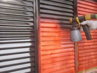 雨戸もN-20で艶消しの黒めのグレーです。雨戸はケレンしてから錆止め(画像の赤い塗料)を塗り、その上から仕上げの塗りを2回塗りをします。